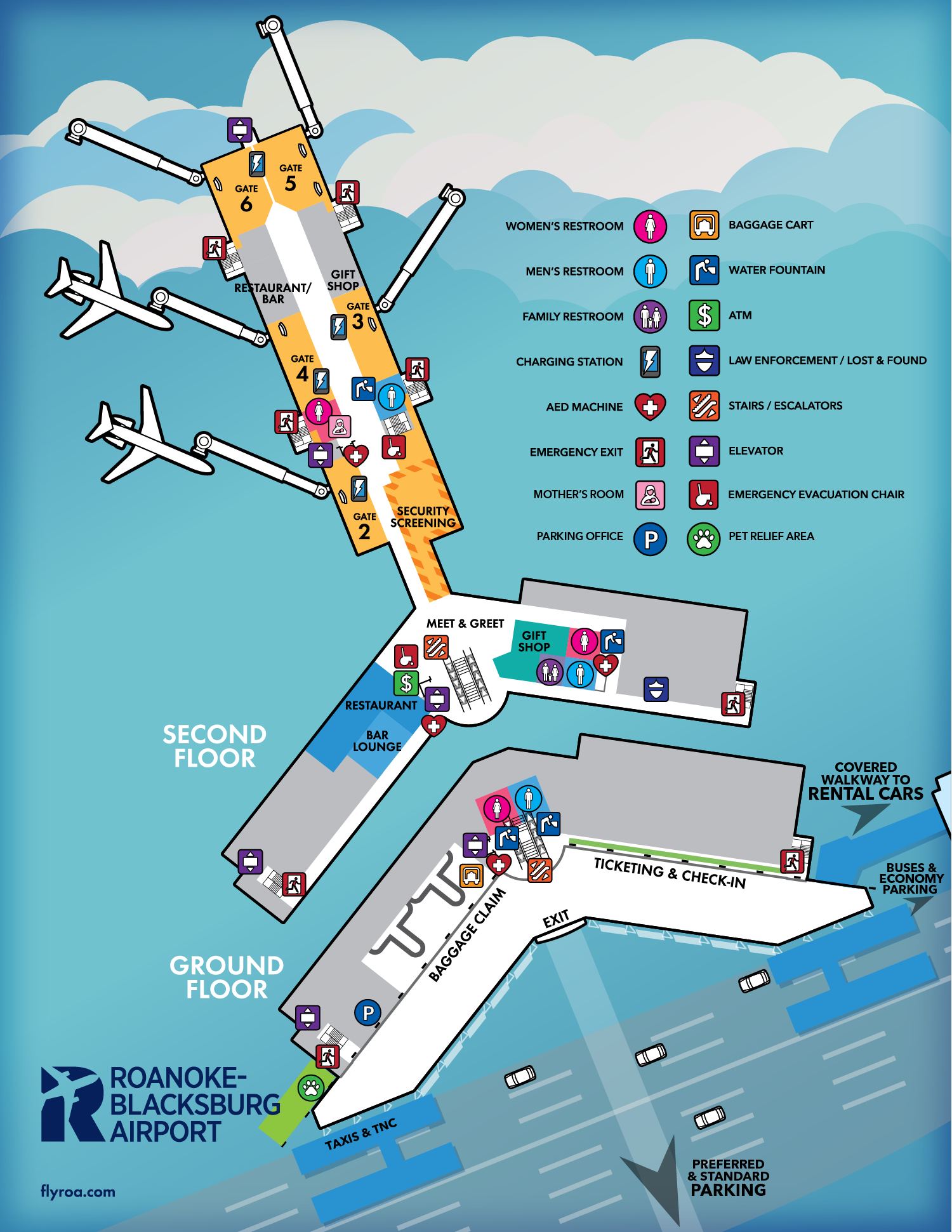ROA has a team of highly dedicated and helpful Airport Ambassador volunteers to assist passengers with any questions about their travels. They also can provide information about transportation, lodging, dining, and local attractions.